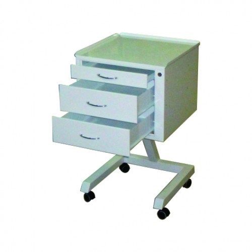 Столик стоматолога металлический, столешница с трехсторонней отбортовкой, 3 ящика, на роликовых направляющих.