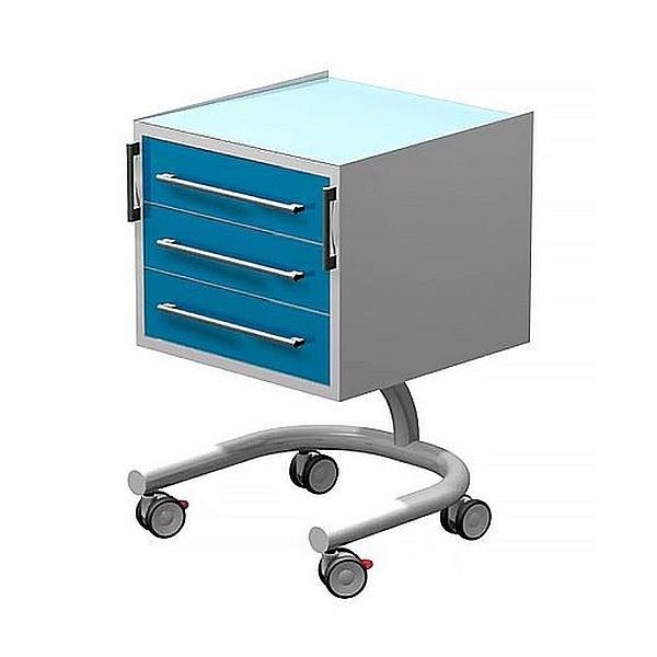 Передвижной столик с тремя выдвижными ящиками, сверху стекло (на «круглой ноге»), в800 х ш500 х г500мм