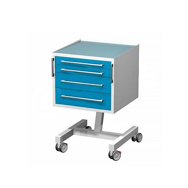 Передвижной столик с четырьмя выдвижными ящиками, сверху стекло (на «квадратной ноге»), в800 х ш500 х г500мм