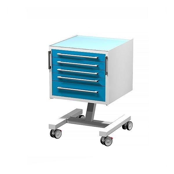 Передвижной столик с пятью выдвижными ящиками, сверху стекло (на «квадратной ноге»), в800 х ш500 х г500мм