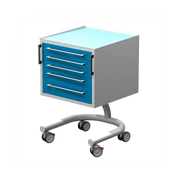 Передвижной столик с пятью выдвижными ящиками, сверху стекло (на «круглой ноге»), в800 х ш500 х г500мм
