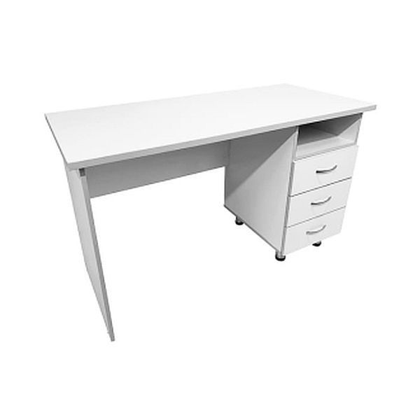 - Стол имеет одну тумбу с нишей и 3-мя выдвижными ящиками на роликовых направляющих, размеры тумбы — 368х502х612 мм