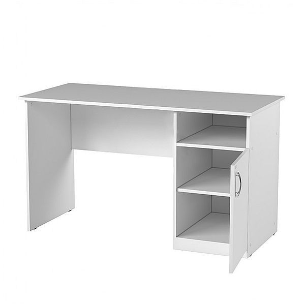 - Стол с тумбой изготовлен из ЛДСП 16 мм белого цвета с кромкой ПВХ 0,45 мм, фасад — с кромкой 2 мм