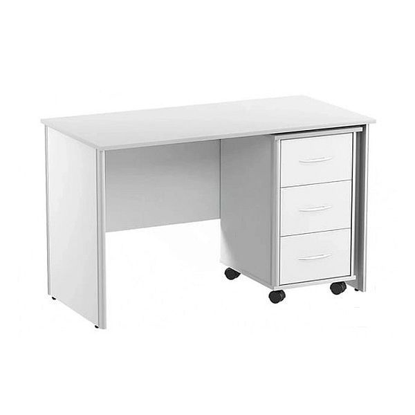 - Изготовлен из ЛДСП 16 мм белого цвета с кромкой ПВХ 0,45 мм, передние и задние стойки — из анодированного алюминиевого профиля