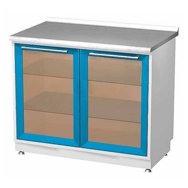 AR-28 Металлическая тумба с двумя распашными застекленными дверями и двумя стеклянными полками
