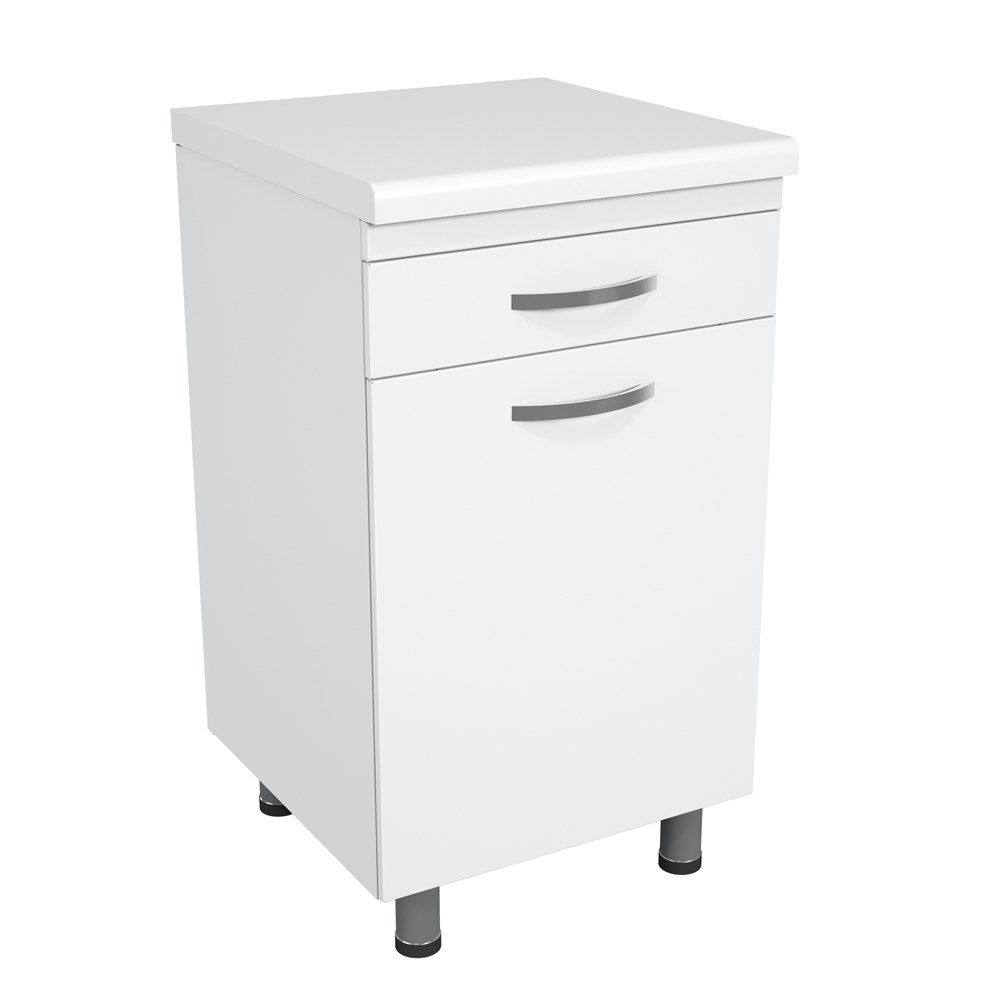 - В тумбе используется качественная фурнитура: хромированные ручки-скобы длиной 160 мм и мебельные петли с механизмом плавного закрывания