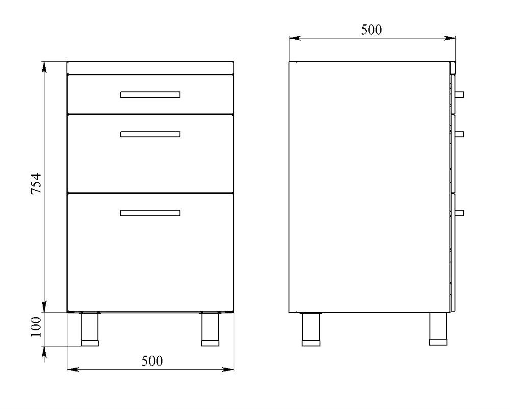 - Высота: 855 мм (без столешницы)
