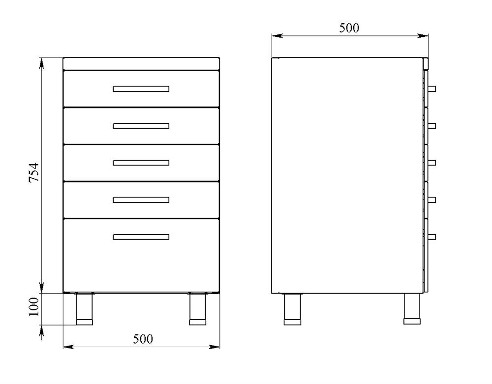 - Высота: 855 мм (без столешницы)