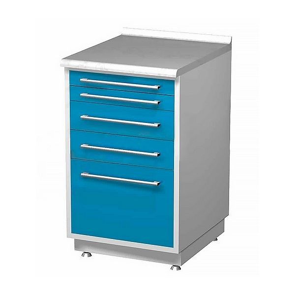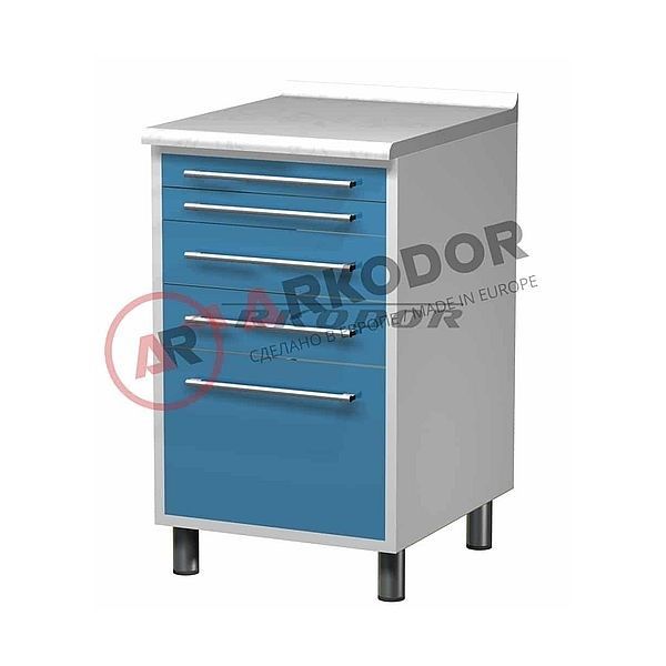 Металлическая тумба с пятью выдвижными ящиками.