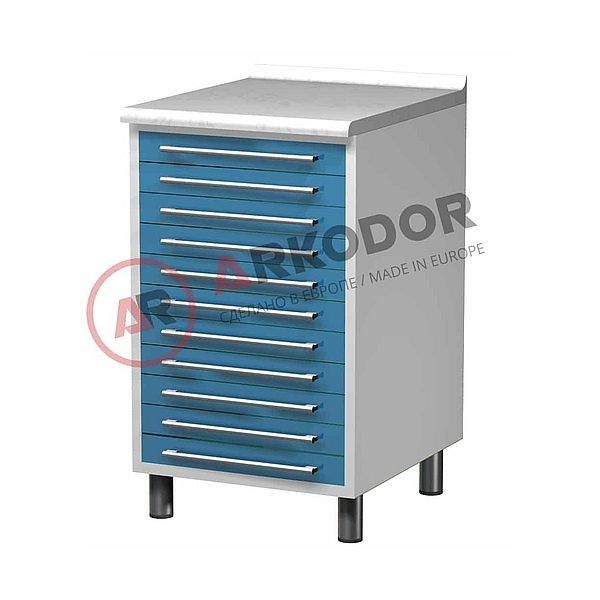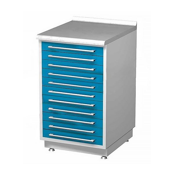Металлическая тумба с одиннадцатью выдвижными ящиками.
