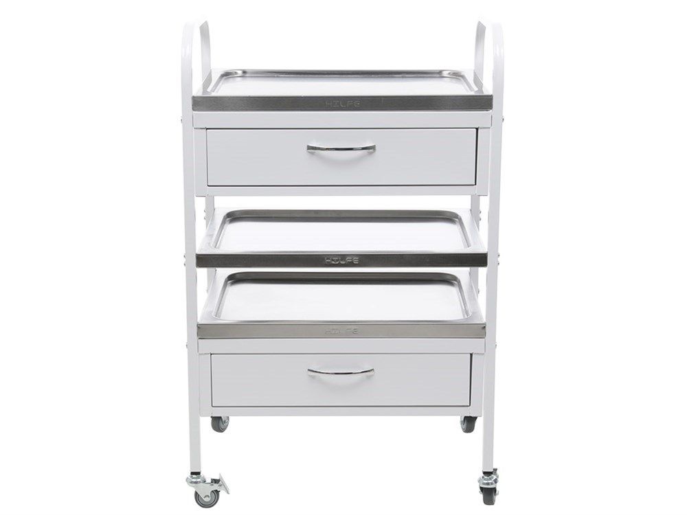 - Ограничительный бортик по всему периметру полок исключает скатывание предметов во время передвижения столика