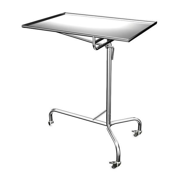 - Столик установлен на 3 самоориентирующихся колеса с ободом из немаркой резины, 2 с автономным тормозным устройством, колеса обеспечивают легкое перемещение в зоне эксплуатации, а тормоза — надежность при стационарном использовании