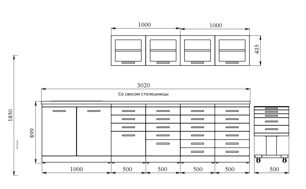 - Размеры (Ш х Г х В): 3000 х 530 х 880