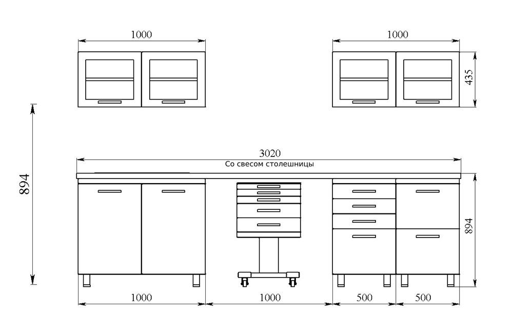 - Тумба медицинская с ящиками ТМЯ-4.0 на опорах – 1 шт.