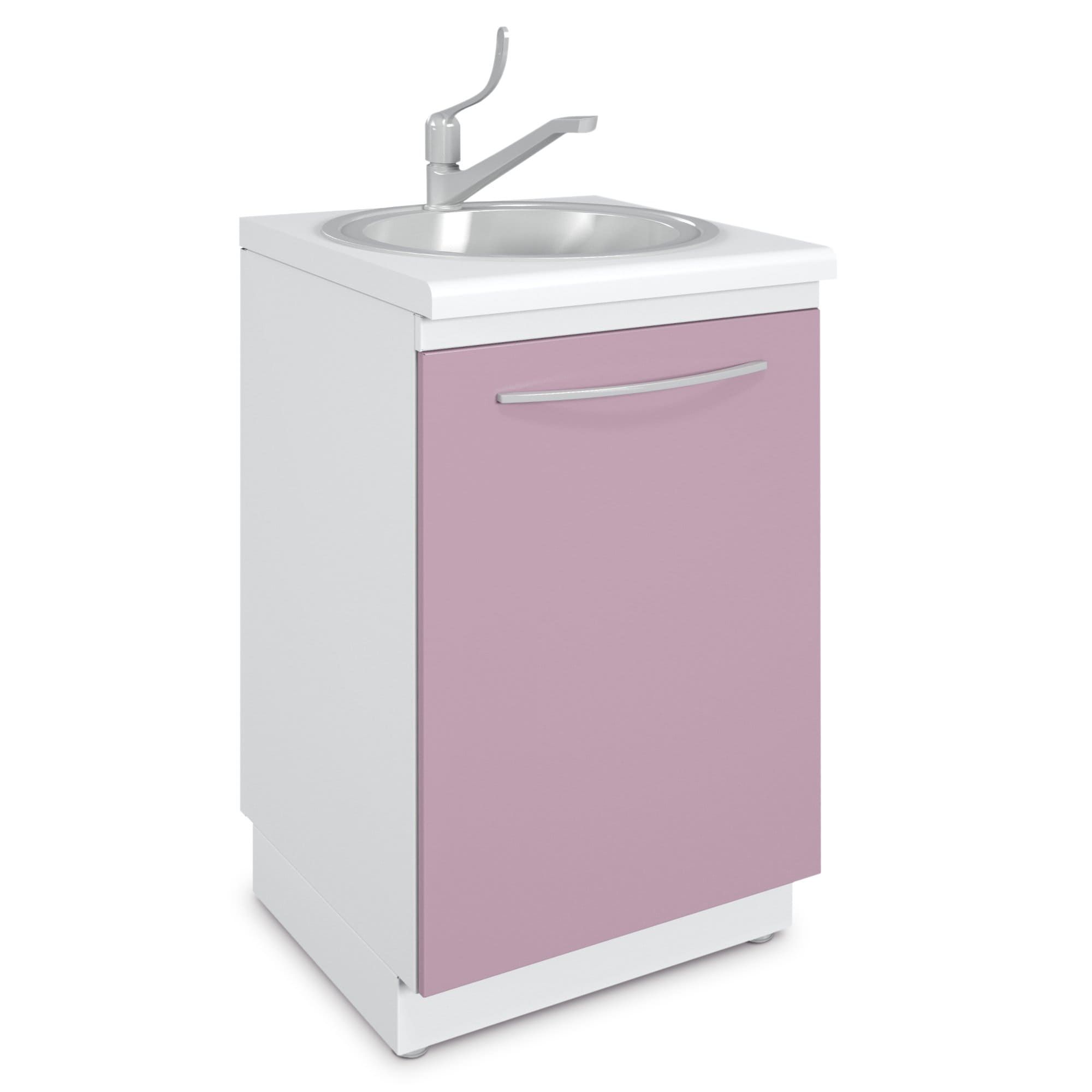 - В комплекте с тумбой может быть поставлена мойка из нержавеющей стали, диаметром 430 мм, локтевой смеситель и сифон.