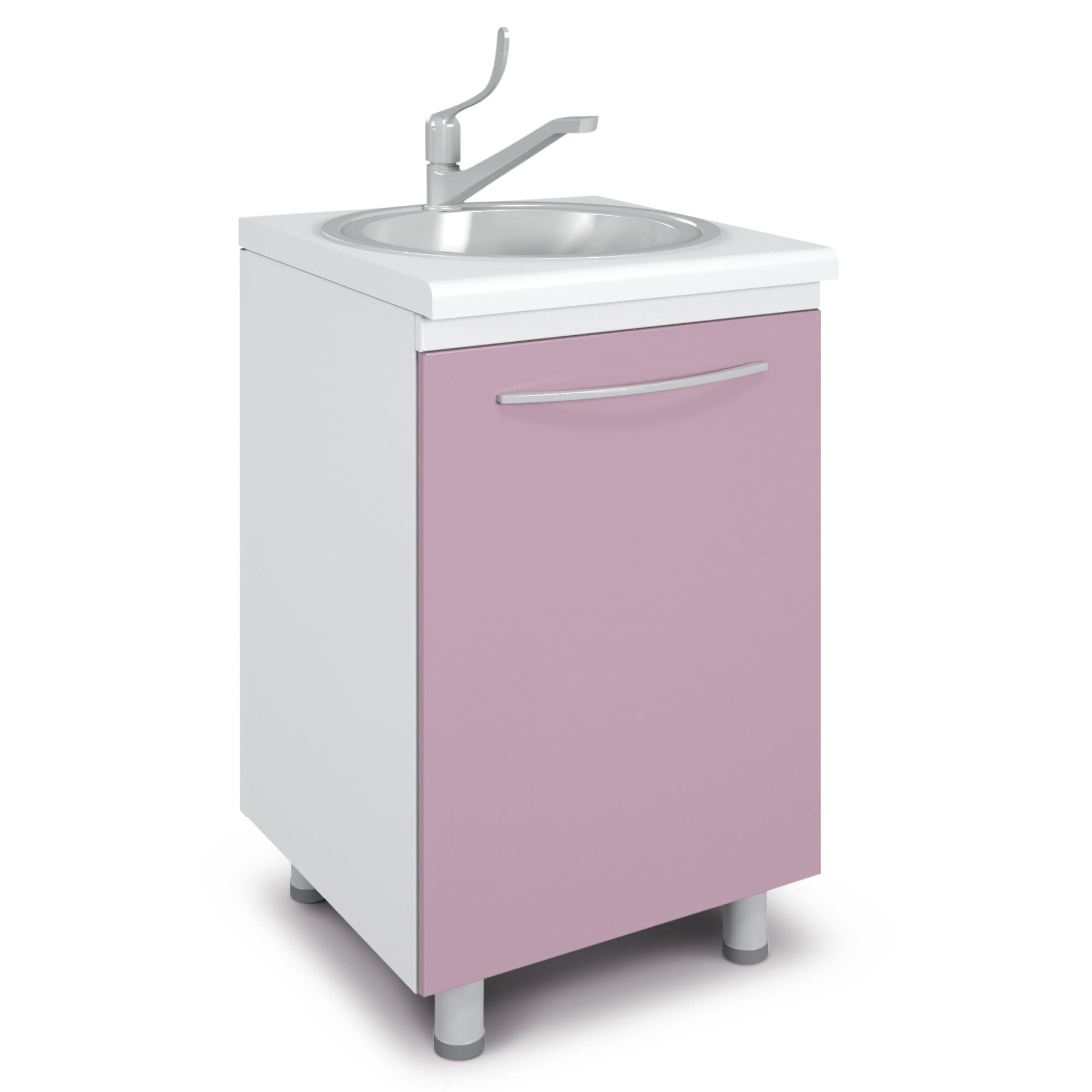 - В комплекте с тумбой может быть поставлена мойка из нержавеющей стали, диаметром 430 мм, локтевой смеситель и сифон.