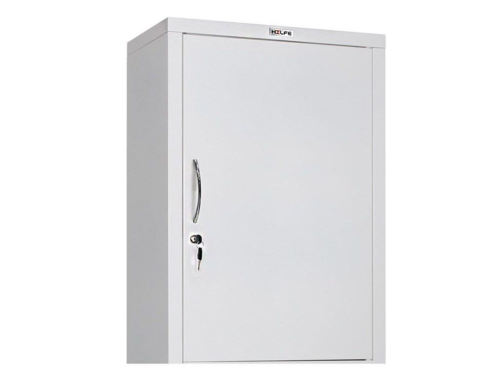 - Шкаф делится на верхнее и нижнее отделения, каждое состоит из 2-х полок и дверки из металла 0,7 мм